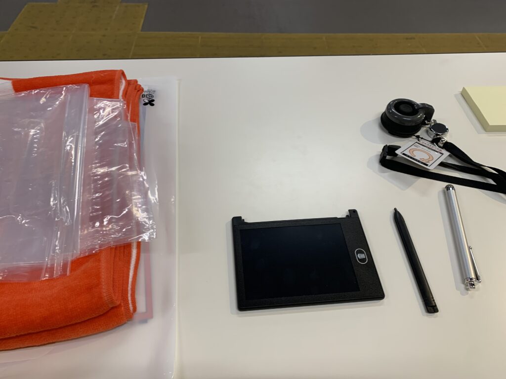 書いたら、電子メモをBの人に渡す。Bの人がビブスを探してくる間に、