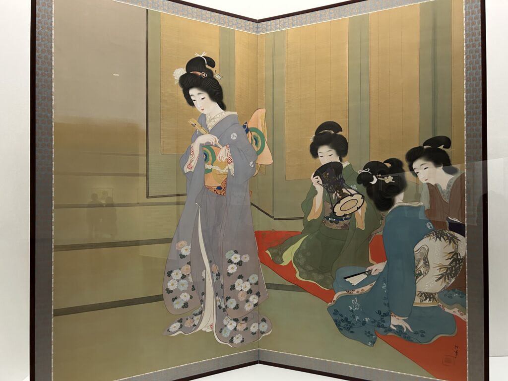 当時、画家は男性が圧倒的に多かったわけだが、男性が描く美人画のように若さや艶やかさを強調するのではなく、松園の美人画には温かな愛情やまなざし、生き方への敬意が込められている。