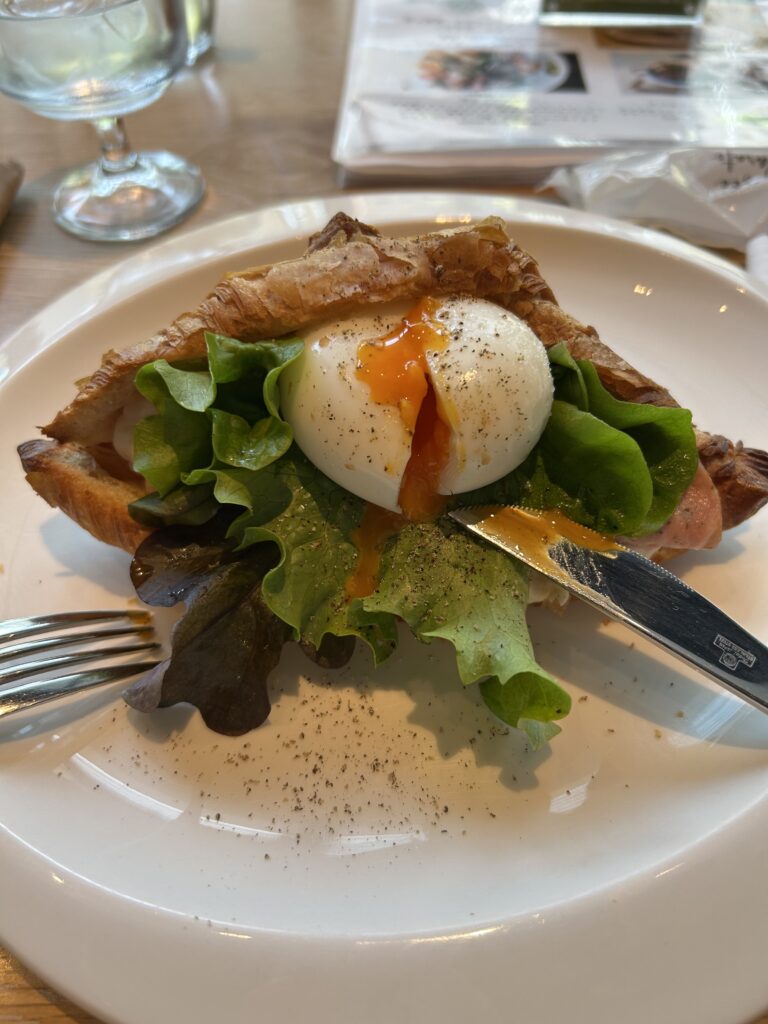 クロワッサンはサックサクで、すごく美味しい。こういうクロワッサンは久しぶりだ。まあ、中身はマッシュポテトとサラミ、ピラっと一枚のレタス、卵、と野菜は少なすぎるが。