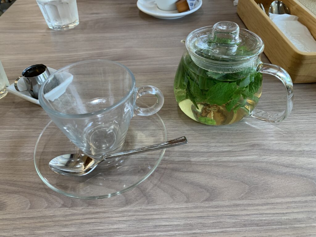 注文を終えて、私はトイレに行ってきた。戻ってきたらハーブティーが来ていた。透明なポットに入っていた。
