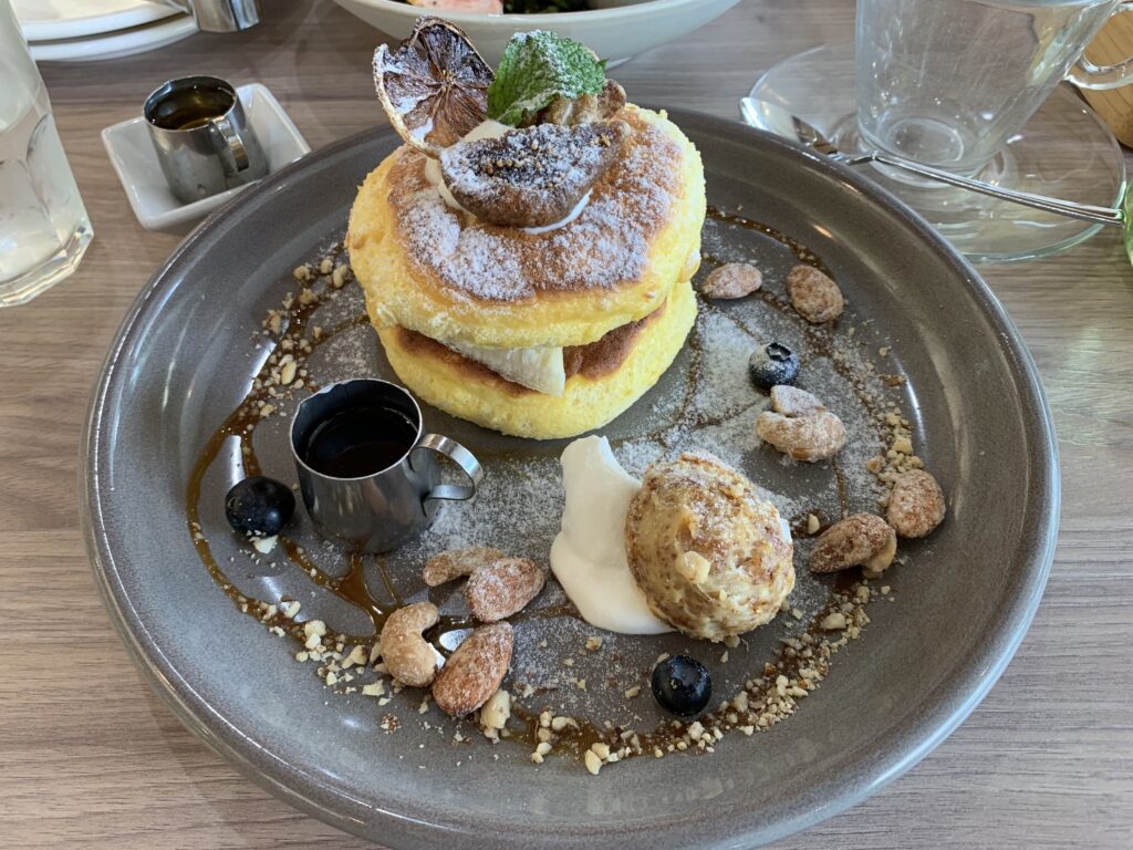 肝心のパンケーキだが、ふわふわではあった。が、なんかすごく特別な食感なのかと思っていたのが、そうでもなかった。しいて言うならば、パンというよりもケーキだな、という感じか?家でホットケーキを焼くと表面が少し硬くなるが、それがない。そして、ぺろりと食べられてしまうほど軽い。
