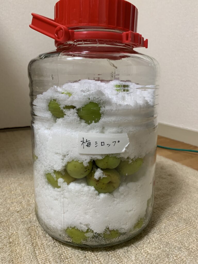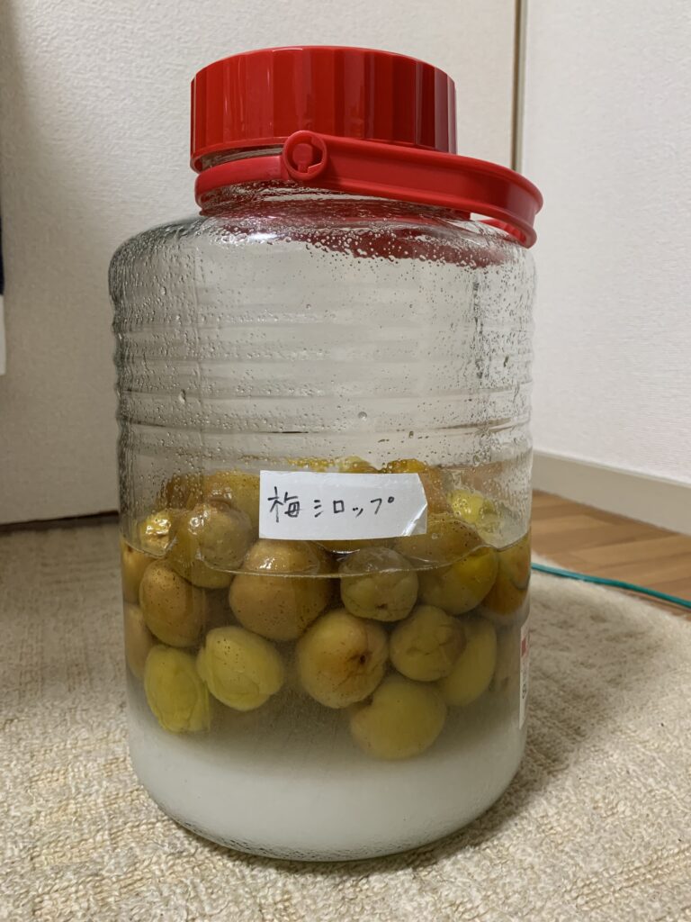 5月30日(日)に梅のシロップ漬けを作り、冷暗所に置いた。