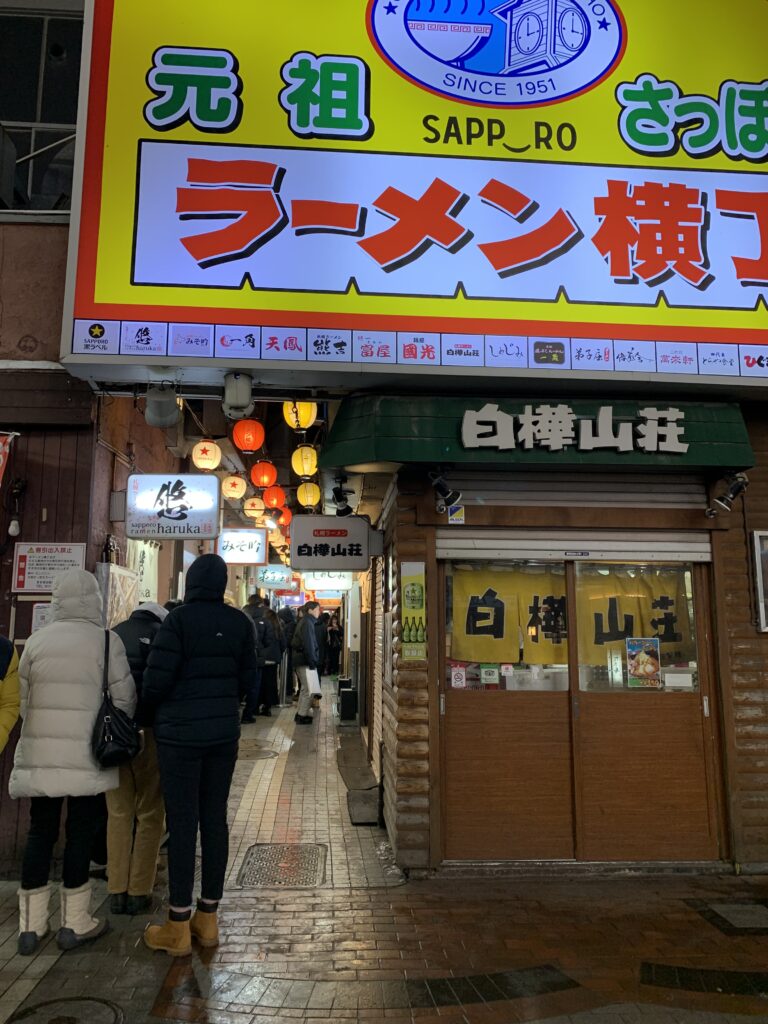 途中通ったのが、前頁で予告したこれ↑。ラーメン横丁の反対側。うわー、なんかたくさん並んでない?