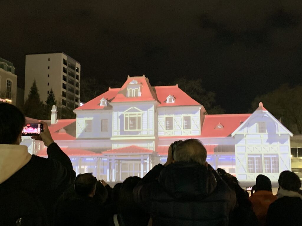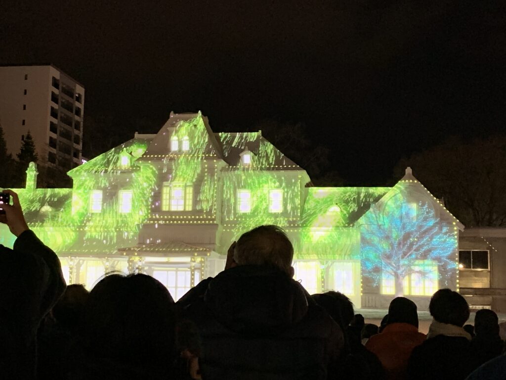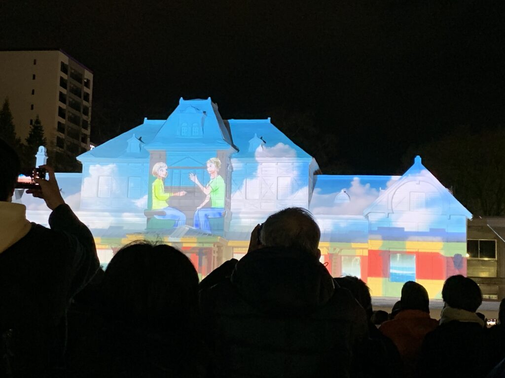 すごかった。光と音楽でストーリーが出来ていた。ある女性の半生みたいな。そんでね、窓のところにパチパチっと電気が瞬いて点いたり、電車が走ったり、遠ざかったり!これは、正確に雪像が作られているからこそ、出来る技だと夫が言う。自衛隊さんの……。なんか、途中でちょっと泣いちゃった。感動しちゃって。