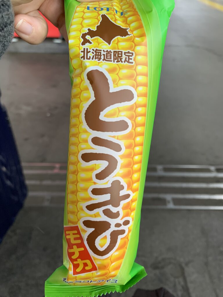だが、ここで幻のアイス発見!韓国ではよく売られているというトウモロコシ型のアイスもなか。これが、北海道では売っているのか!