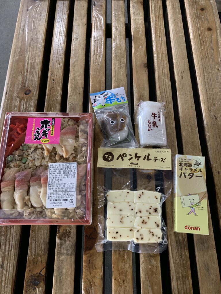 夫は駅の売店でお弁当を買った。それがね、ホッキ貝弁当。そして、そこで1500円以上買うと福引が引けると言われて、あれこれ買う。外はアイスも溶けない気候だが、屋内となると……大丈夫か?