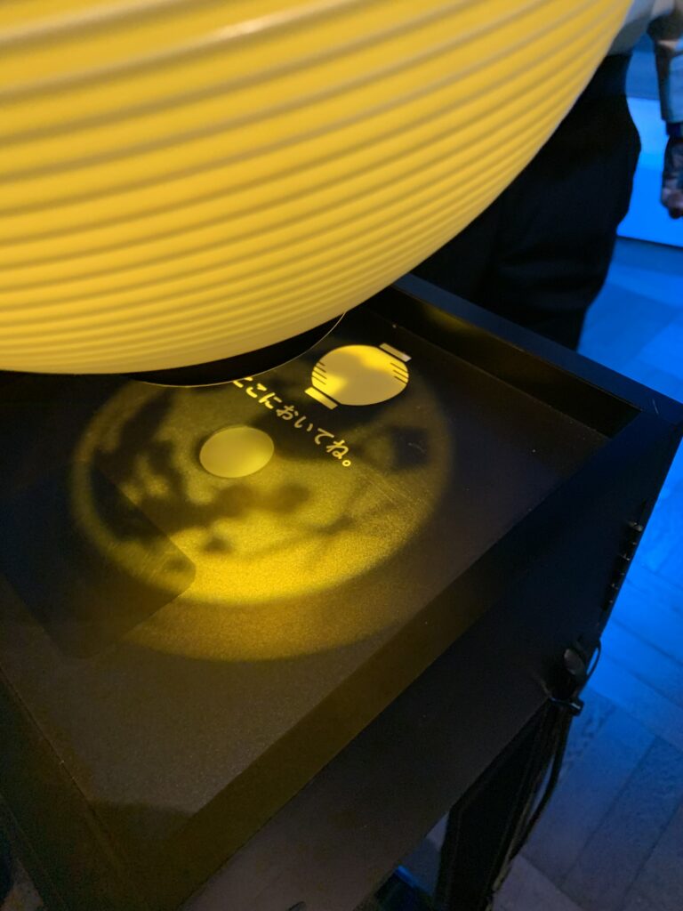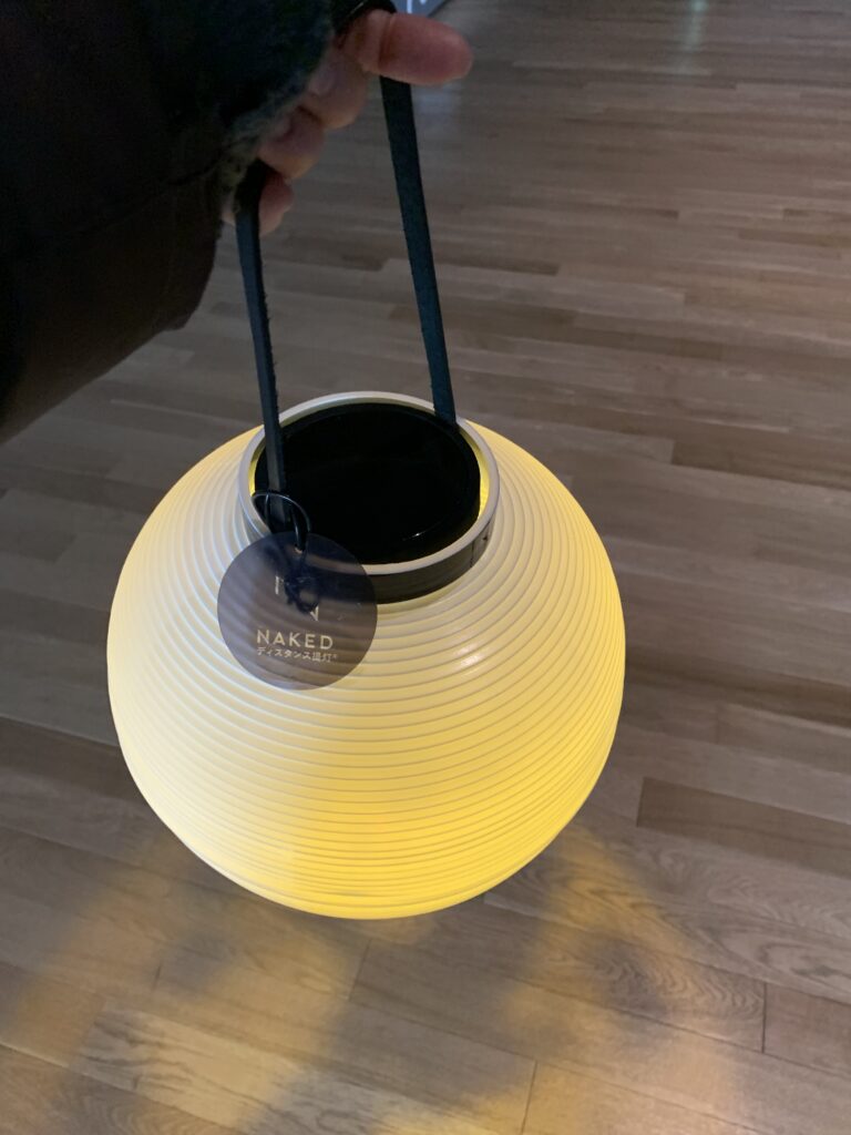 夜をイメージした展示だそう。だから、提灯を持って行くのだ。でもね、ちょっと邪魔だったかな。