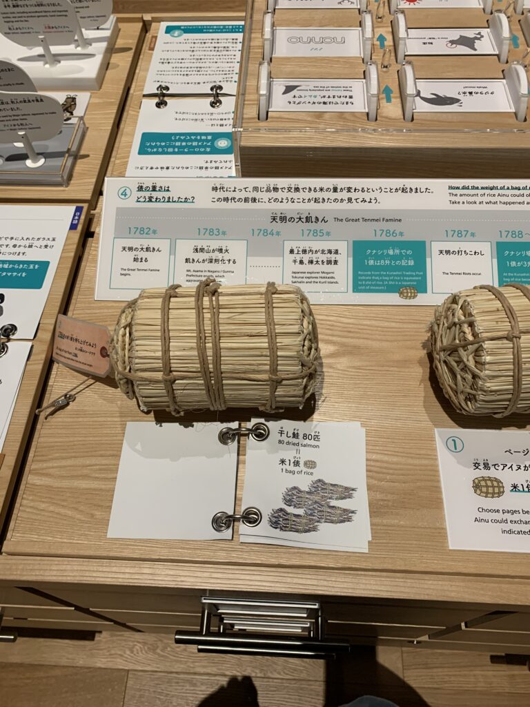 基本「わたしたちは」という展示内容だった。「アイヌ人は」ではなく。和人がアイヌ人を迫害した歴史もありつつ、あまりそこを強調するのではなく、どちらかと言うと「アイヌ人」も「和人」も、皆同じ「日本人」で、変わらないよ、というコンセプトのように感じた。あと、「アイヌ」とは「人間」という意味の単語だそうだ。
