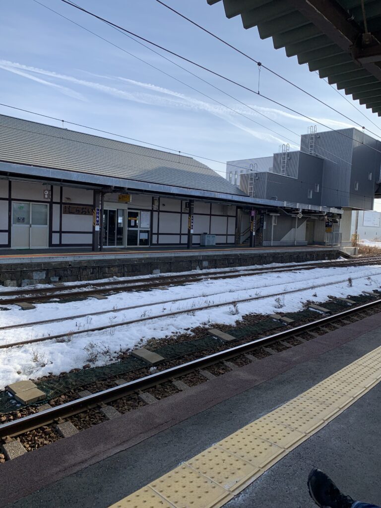 ホームで列車を待つ間、サンドイッチを食べた。寒い。が、列車に乗ったらすぐにアイスを食べなければならないので、ここで先に食事の方を済ませるのだ。