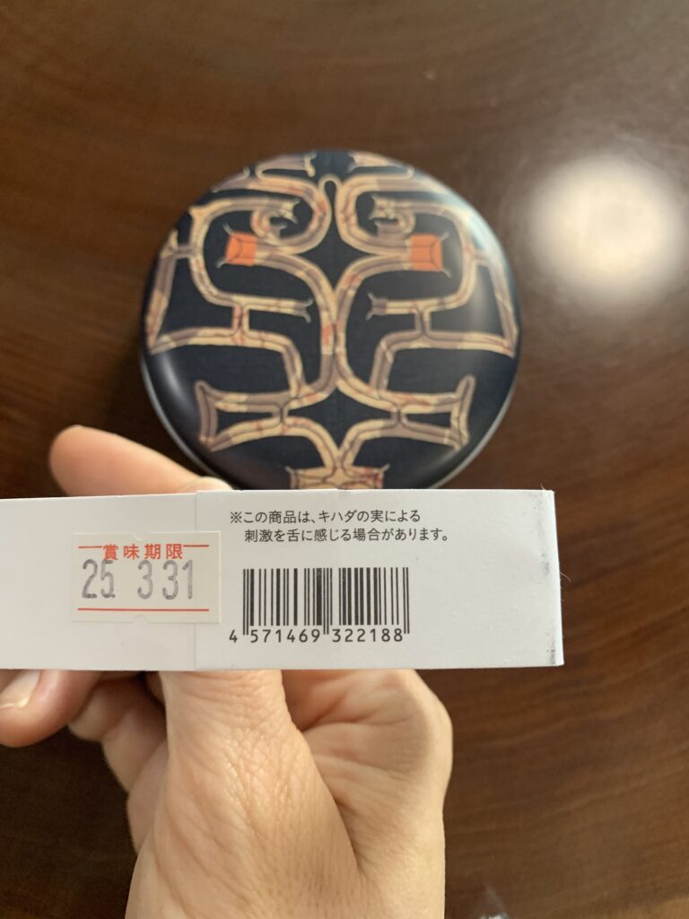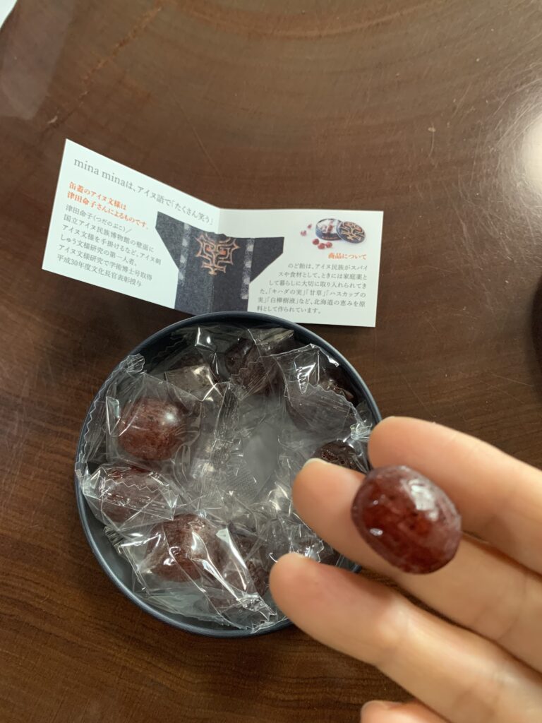 それから、ほがじゃとのど飴も。缶に入っているのがのど飴。甜菜糖、ハスカップ、キハダの実、甘草が入っているらしい。