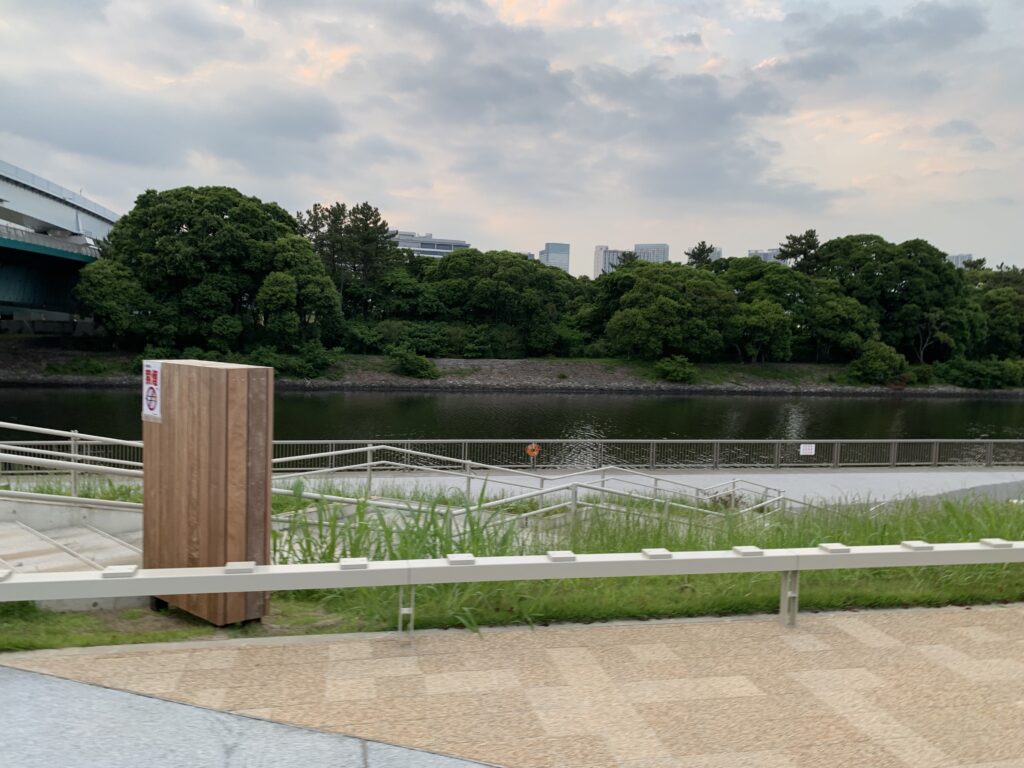 この辺りの夜景というのか、ビルと水の景色がすごく綺麗。建物から出てくると度肝を抜かれる。でも、前回は何度写真を撮ってもボケてしまった。で、今日も歩きながら一応1枚撮ったら……