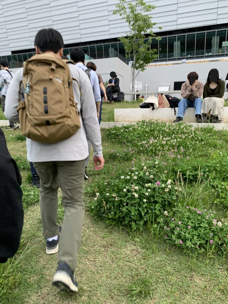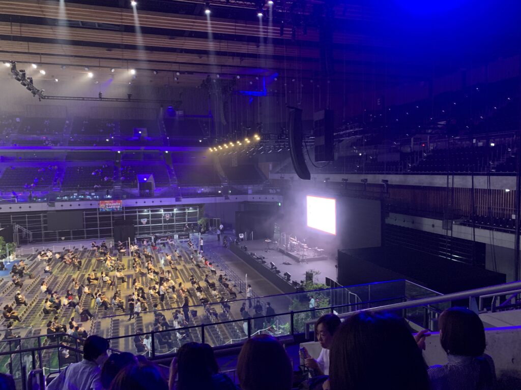 やはり上の方の端っこだった。ステージがあちらです、とわざわざスタッフの人が教えてくれて、ステージが見えるところ、つまりボランティア用エリアの中の一番真ん中寄りで、なるべく前を適当に選んで座った。やはり一番真ん中寄りの席ばかり埋まっている。その真ん中寄りの席から1つ空けて座った。すると、