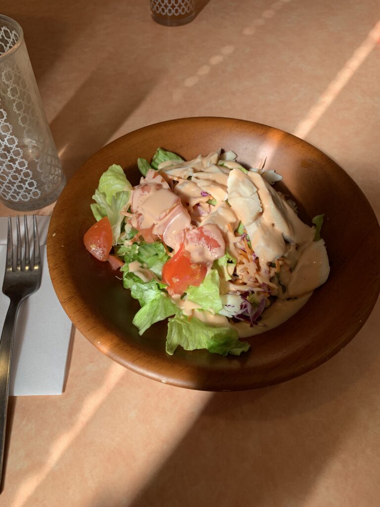 なんか、すごくお腹が空いていたのに、いざ何を食べたいかと考えると浮かばない。結局食べた事のあるようなメニューにしてしまった。なんか、半熟卵だけは食べたいと思えたので、そういうのが乗っかっているドリアに。それと野菜が必要だと思ってサラダも。サラダが思いのほか大きくて、それを先に食べたら満足してしまったりしたのだが。